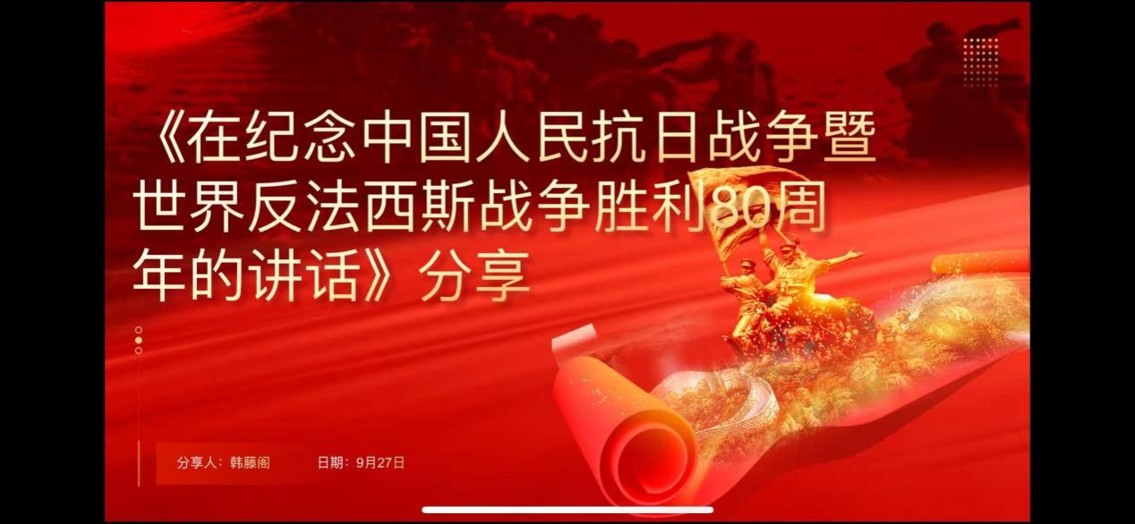 习近平新时代中国特色社会主义思想学习读书小组第六十期活动以《习近平在纪念中国人民抗日战争暨世界反法西斯战争胜利80周年大会上的讲话》为主题进行学习研讨。本次读书会由澳门威尼斯人官网