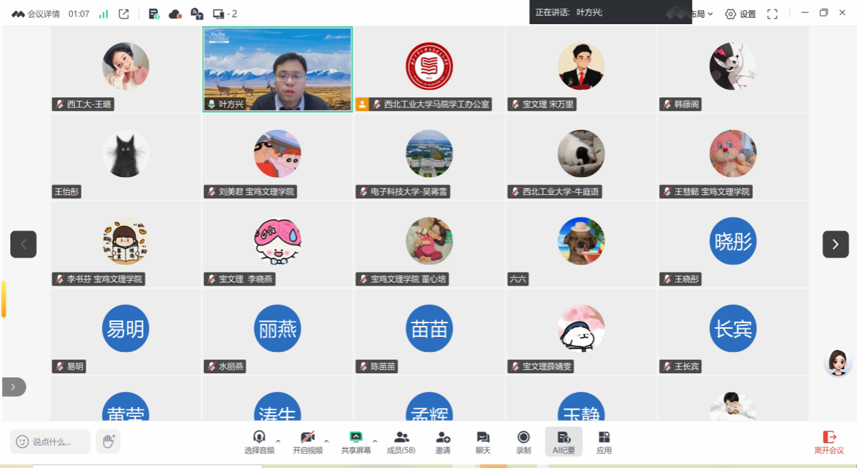导读环节结束后,叶方兴首先教授表达了对西工大马院读书会邀请的感谢。接着,他高度评价了两位同学的分享。认为他们系统、全面、专业地诠释了习近平新时代中国特色社会主义思想的重要性和指导地位。最后,叶教授分享了对《习近平谈治国理政》第五卷的学习体会,叶教授强调了习近平新时代中国特色社会主义思想在马克思主义理论研究中的核心作用,并指出其时代性、实践性和开放性。他还提到,学习新思想需要系统性和具体化的结合,同时要注重学理化和体系化的阐释,以推动理论创新和实践指导。