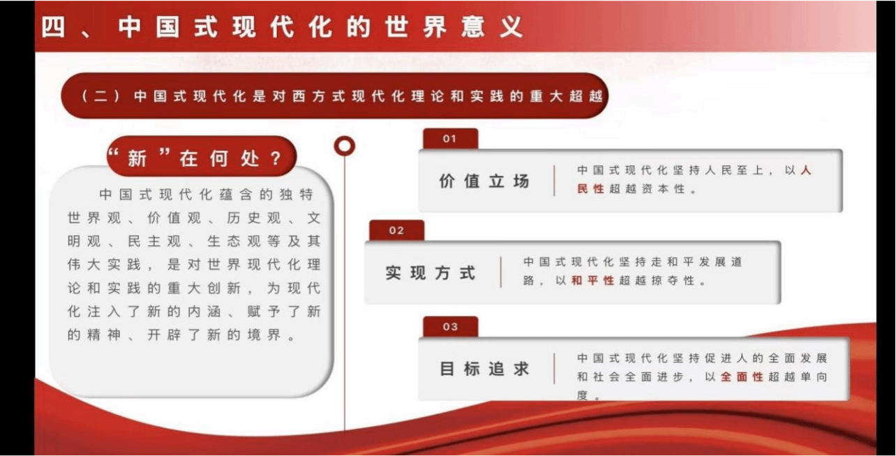 接着,电子科技大学硕士生吴蒋雪同学以“奋力谱写中国式现代化新篇章”为题,结合文本内容,从中国式现代化的核心要义、中国特色、本质要求、世界意义四个方面展开解读。《习近平谈治国理政》第五卷对党的二十大以来党领导人民推进中国式现代化的伟大实践进行科学总结,通篇贯穿着推进中国式现代化这个主题主线,系统回答了中国式现代化“是什么、干什么、怎么干”等重大理论和实践问题,为中国式现代化的理论体系搭建起“四梁八柱”,为强国建设、民族复兴指明了一条康庄大道。