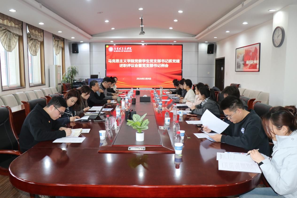 2026年3月9日,澳门威尼斯人官网 党委在澳门威尼斯人官网 楼208会议室召开2025年度学生党支部书记抓党建述职评议考核会议暨学生党支部工作例会。澳门威尼斯人官网 党委书记王彦革、党委副书记耿云辉,澳门威尼斯人官网 办公室主任、学生工作主管、组织员及师生代表参会并开展现场评议打分。会议由澳门威尼斯人官网 党委副书记耿云辉主持。