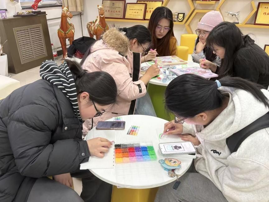 211活动室举行。活动精心准备了拼豆、彩色油画、钻石画三类手工材料,兼顾艺术性与趣味性,充分满足大家的多样创作需求。现场氛围轻松愉悦,大家沉浸在创意迸发的手工创作乐趣之中,相互交流创作心得,现场欢声笑语不断,也拉近了彼此的距离。
