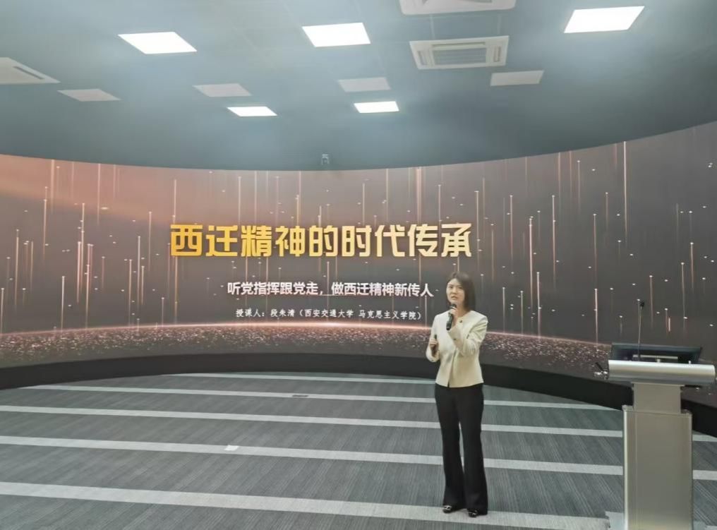 段朱清老师以“西迁精神的时代传承”为题,系统阐释交大师生西迁壮举的历史逻辑与精神内核,强调西迁精神的核心是爱国主义、精髓是听党指挥跟党走,引导青年学生将个人理想融入国家“三航”事业发展大局。