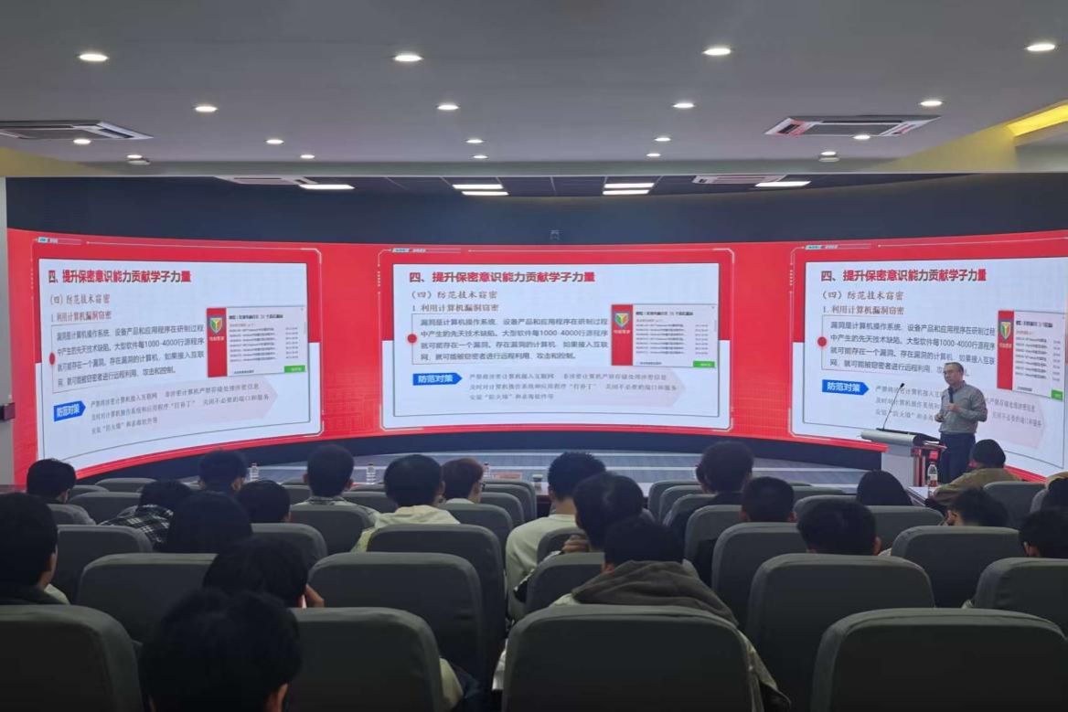 王革明围绕为什么要重视国家安全保密工作、高等院校国家安全保密工作风险点、学校国家安全保密工作组织与管理、提升保密意识、贡献学子力量等方面,结合典型案例和多年工作经验,强调要深刻认识保密工作的重要性,清醒把握当前复杂形势与风险挑战,在增强政治意识、坚守保密法律法规底线,深化责任意识、按学校保密制度和要求履行岗位职责,加强保密意识和能力建设、防范技术窃密等方面精准发力,切实筑牢学校安全保密防线。